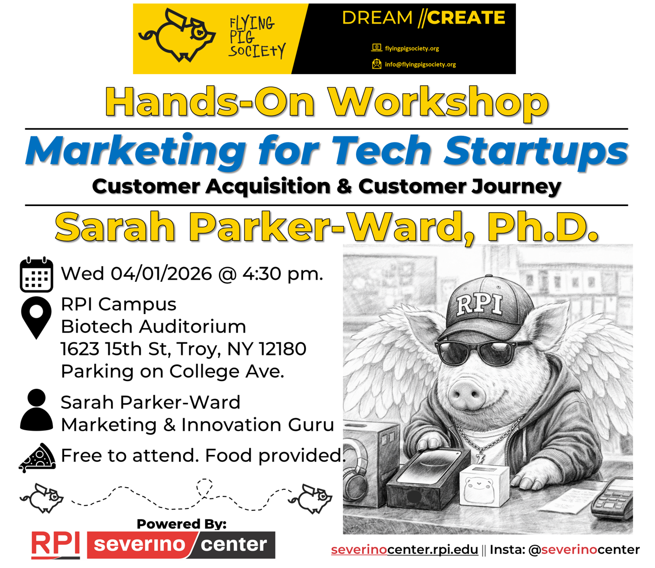 Join the Flying Pig Society for a special workshop on April 1, 2026 at 4:30 pm. Our special speaker, Sarah Parker Ward is a marketing and communications guru! In this hands-on workshop, she will walk through the strategies and secrets for an early-stage startup to acquire customers and map the customer journey.